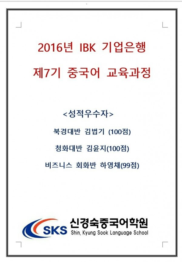 축하합니다!!!(IBK기업은행 제7기 중국어교육과정 성적우수자) 페이지 정보 작성자 최고관리자 작성일16-12-07 10:01 조회15,071회 댓글0건 관련링크 이전글 다음글 목록 본문 축하합니다!!!(IBK기업은행 제7기 중국어교육과정 성적우수자) 이전글 다음글 목록
