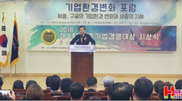 이날 있은 시상식에는 김성태 자유한국당 원내대표가 참석하여 축사를 하였다. 김 원내대표는 축사에서 한중양국은 서로 떨어질 수 없는 경제교류에서 기업인들의 역할은 아주 중요한 위치에 있는 만큼 한중경제교류활성화를 위해 헌신한 기업인들에 대해 존경과 감사를 표시한다고 했다. 또 앞으로 더욱 많은 우수한 기업인들이 수상하길 바란다고 했다