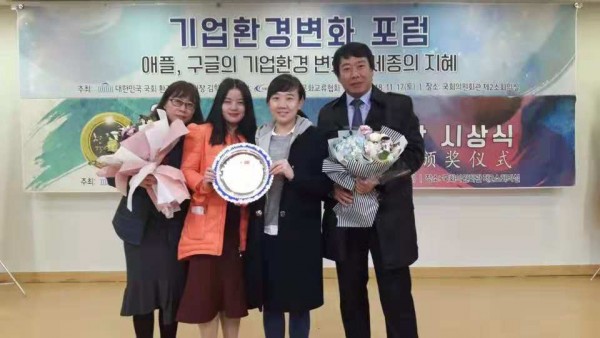 가족자녀들에게도 장학금을 지급하여왔다. 신경숙박사는 유림교역 대표이사로써 30년동안 섬유원료수입,화공약품수출입등 무역을 하여왔다. 신경숙외국어학원은 경력단절 여성을 채용하여 일자리창출하는데도 크게 기여를 하여왔다. 이날 수상은 릴화 신경숙외국어학원 부원장이 수상하였다.